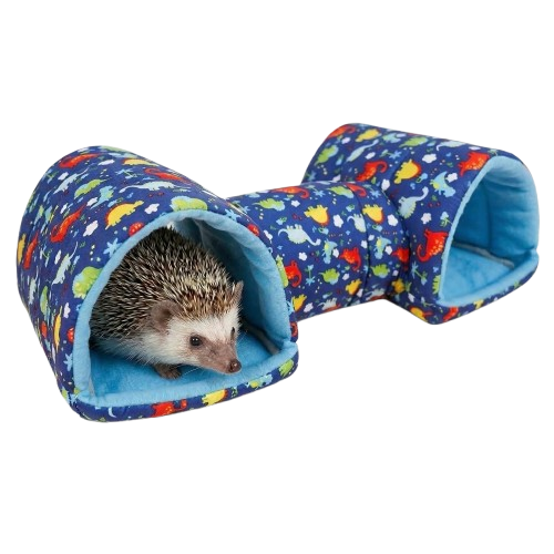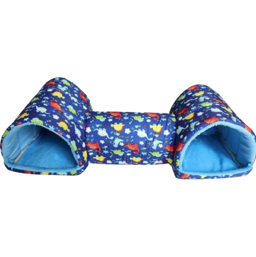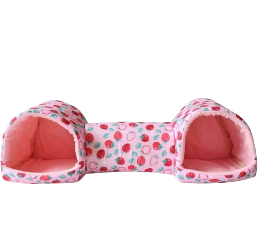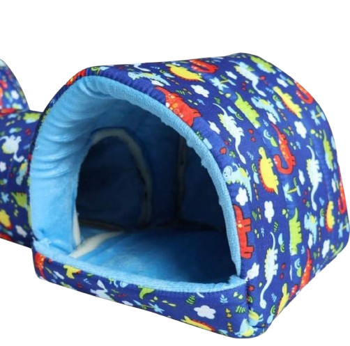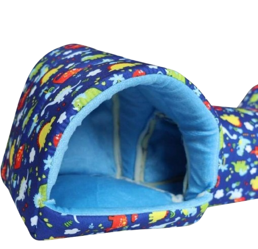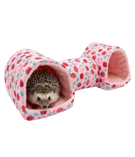 Este refugio tipo casita pero DOBLE, con un tunel que los une. Tiene el tamaño perfecto para que pueda dormir en el día y tomar descansos en la noche. Es muy suave, así que estaré muy cómodo y tranquilo.